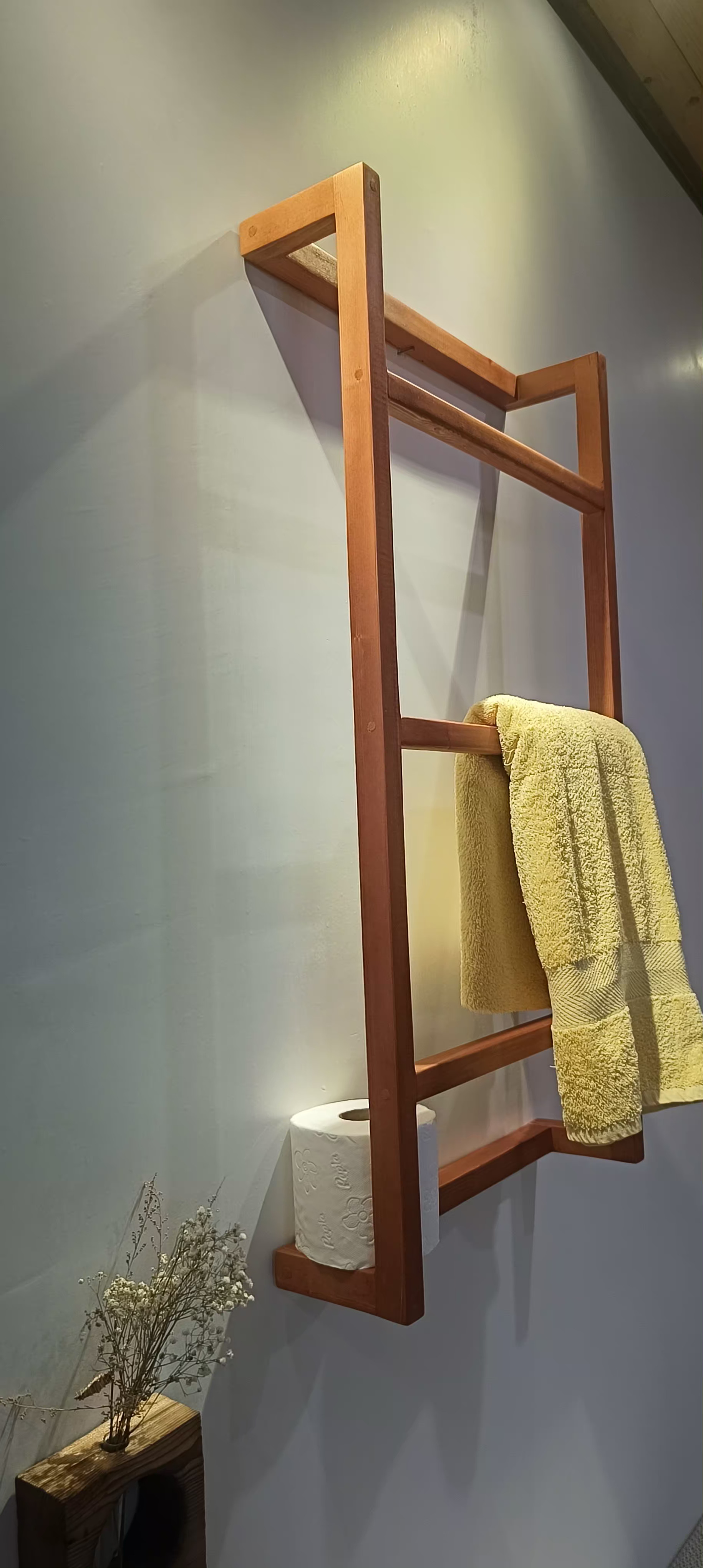 این شلف دیواری حمام ساخته شده از چوب طبیعی با پوشش محافظ توسط رنگ های ایتالیا یی .